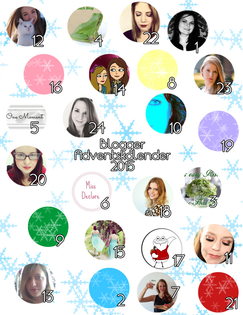 - Beautyadvent 2015 - Auch hier haben sich 24 Mädels zusammengeschlossen und veranstalten einen Adventskalender. Schon morgen öffnet sich das erste Türchen.24.12. wird es ein sehr gehyptes Produkt zu gewinnen geben, mehr Infos erfahrt ihr dann bei den jeweiligen Blogger.